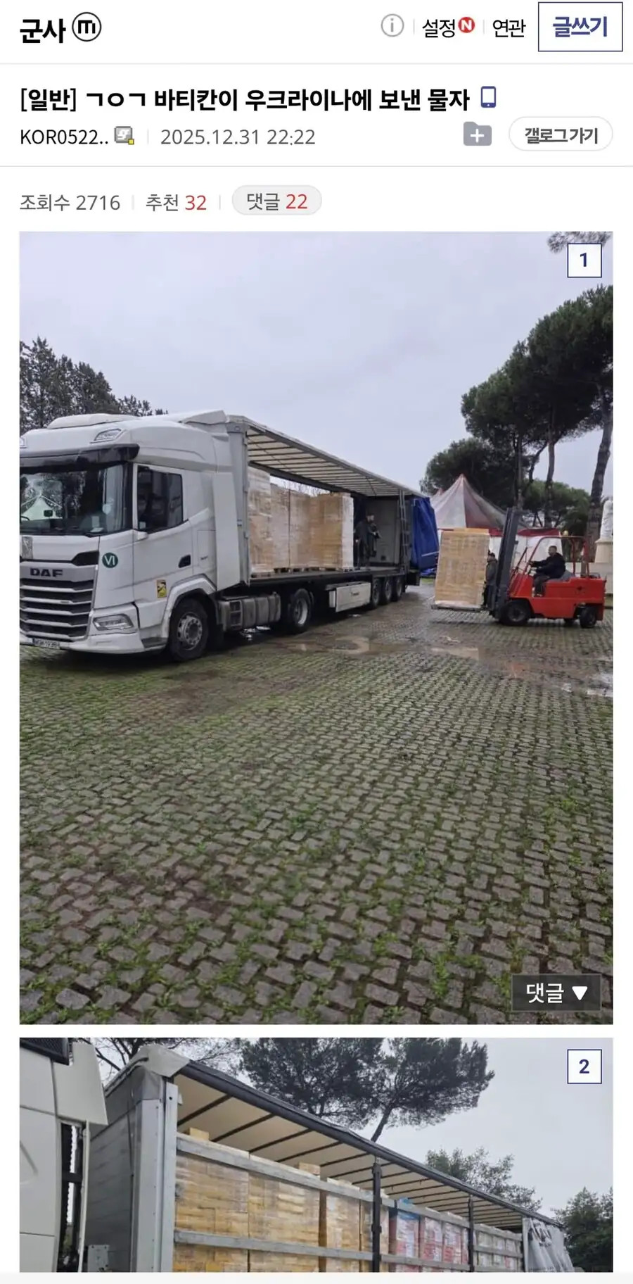 잡식 분류 교황청이 우크라이나에 보낸 구호물자 작성자 정보 황웅 쪽지보내기 자기소개 아이디로 검색 전체게시물 쪽지보내기 자기소개 아이디로 검색 전체게시물 작성 작성일 2026.01.02 01:33 컨텐츠 정보 14 조회 0 추천 0 비추천 목록 본문 0 추천 0 비추천 SNS 공유 신고 관련자료 서명 날으는 황웅 댓글 0 등록된 댓글이 없습니다. 로그인한 회원만 댓글 등록이 가능합니다. 목록