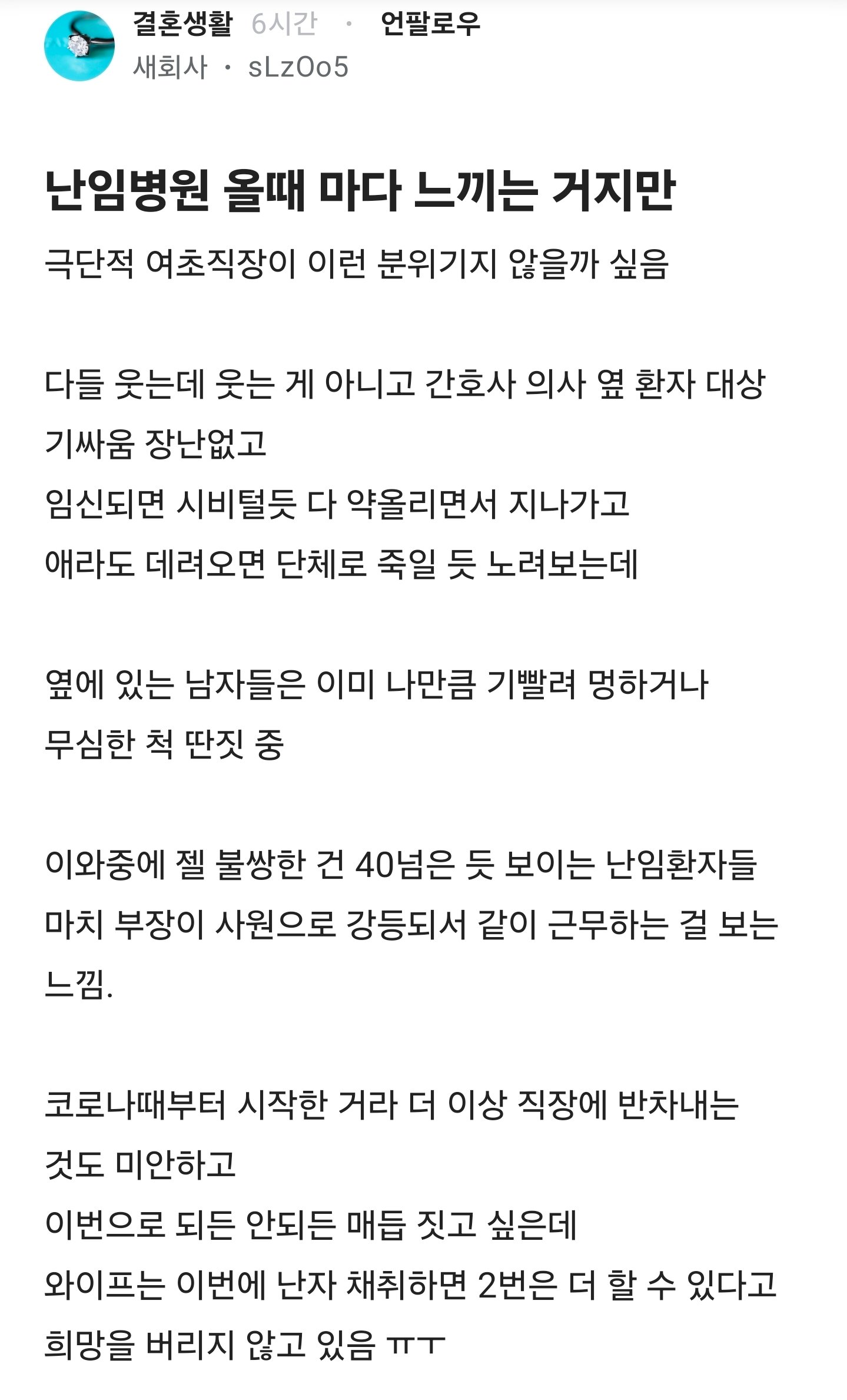 잡식 분류 난임병원의 살벌한 분위기 작성자 정보 황웅 쪽지보내기 자기소개 아이디로 검색 전체게시물 쪽지보내기 자기소개 아이디로 검색 전체게시물 작성 작성일 2026.01.22 02:45 컨텐츠 정보 64 조회 0 추천 0 비추천 목록 관리 글검색 본문 난임이 사회적인 문제가 되어버렸음 그도 그럴것이 여러이유로 인해 남자든 여자든 만혼이 늘어서 생산능력이 떨어져서임. 사랑하는 사람이랑 조건안보고 결혼할수있는 여건이 되어야 없어질것 같다.그 이유를 유추해 보건데 한국인 남자의 평균 4~50대 국결 혼인대상 여성이 20대 초반일때거의 95% 이상의 가임이 되더라, 고로 남자보단 여성이 십대 후반에서 20대앤 결혼을 해야 건강하게 훼임될수 있겠다고 생각이 된다. 일단 여성이 40이 저후면 기형아 발생 건수도 는다고 하고 훼임이 어럅다고 한다는데.... 0 추천 0 비추천 SNS 공유 신고 관련자료 서명 날으는 황웅 댓글 0 등록된 댓글이 없습니다. 로그인한 회원만 댓글 등록이 가능합니다. 목록 관리 글검색