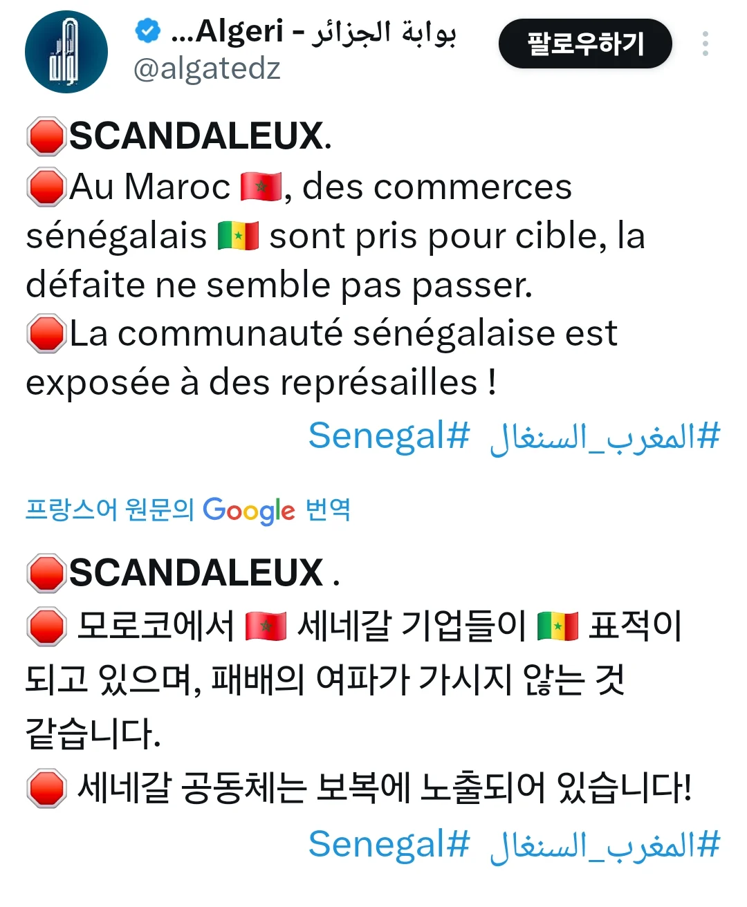 네이션스컵 결승전 패배후 모로코인들이 세네갈 상점에 보복
