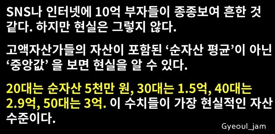 저 수치들은 밎는데 가구 당 순자산이란 착시가 있는 것 같습니다.