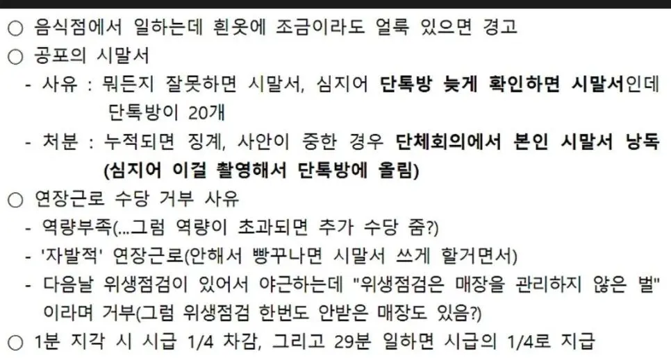 잡식 분류 런던 베이글 사내규정 작성자 정보 황웅 쪽지보내기 자기소개 아이디로 검색 전체게시물 쪽지보내기 자기소개 아이디로 검색 전체게시물 작성 작성일 2025.11.09 03:32 컨텐츠 정보 2 조회 0 추천 0 비추천 목록 본문 직원들은 거진 노예처럼 부려먹었네?이야... 왠만한 블랙기업들은 울고갈 삘.개쓰레기같은 놈들이네 하.. 0 추천 0 비추천 SNS 공유 신고 관련자료 서명 날으는 황웅 댓글 0 등록된 댓글이 없습니다. 로그인한 회원만 댓글 등록이 가능합니다. 목록