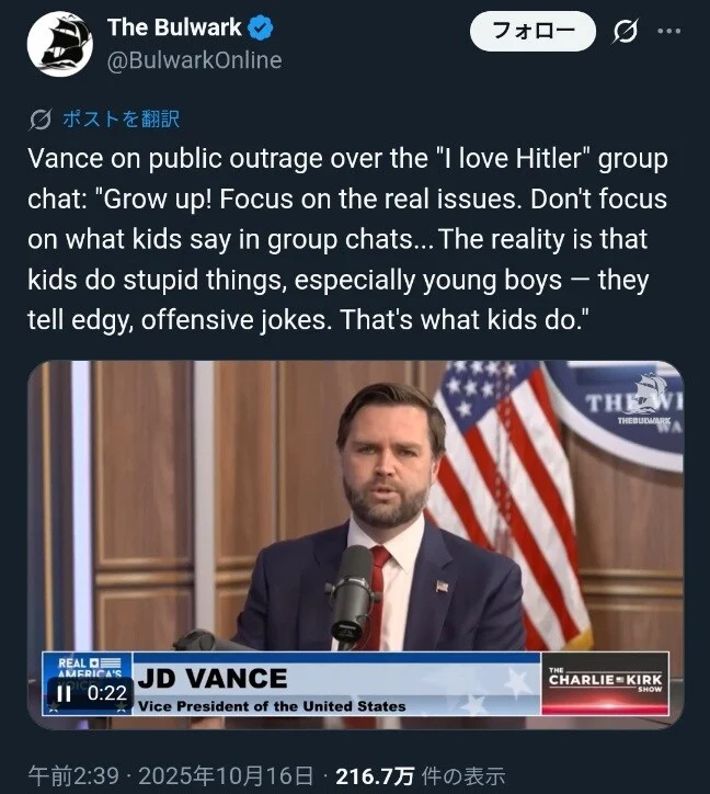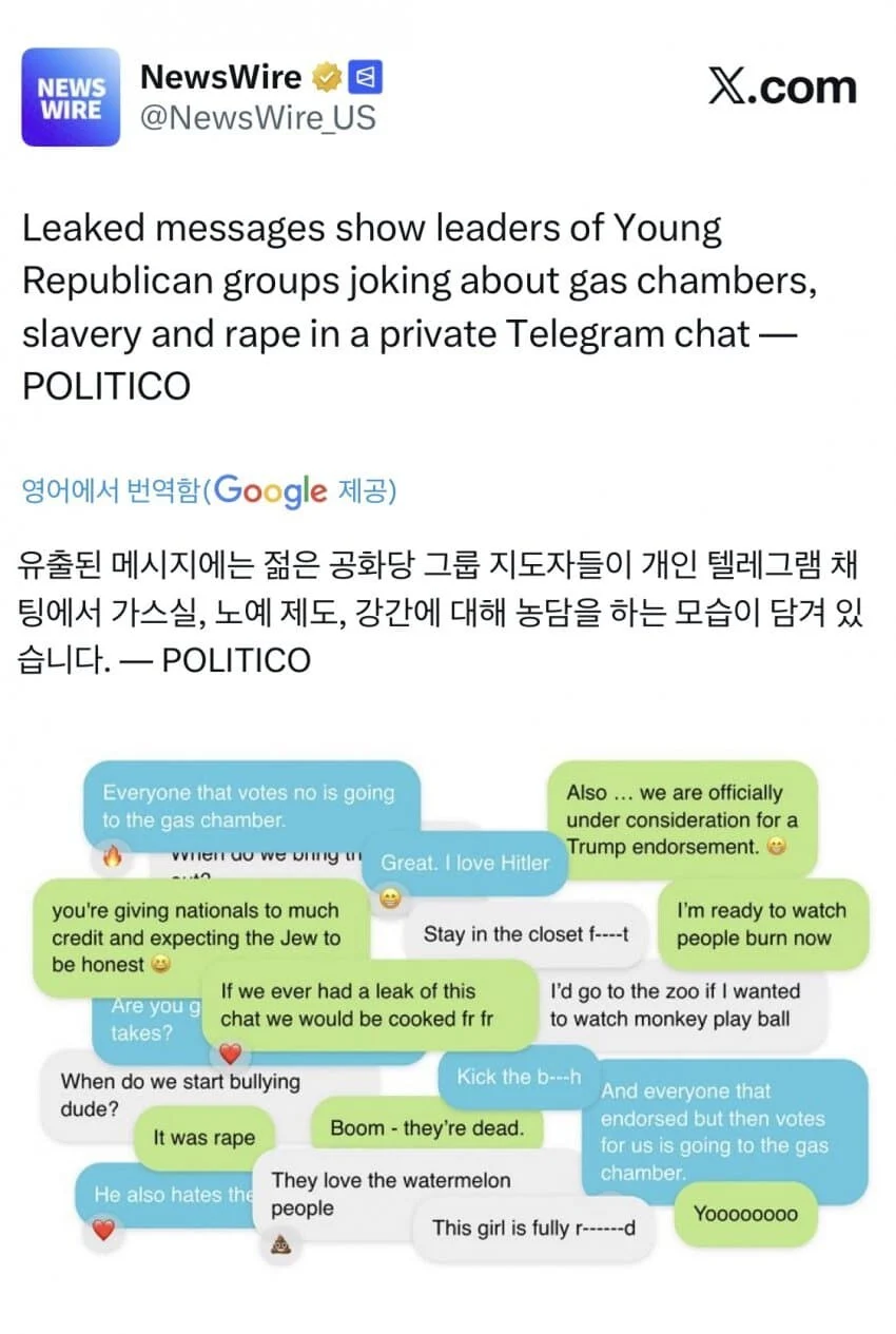 잡식 분류 미 공화당 청년조직의 나치찬양 폭로에 JD밴스 반응 작성자 정보 황웅 쪽지보내기 자기소개 아이디로 검색 전체게시물 쪽지보내기 자기소개 아이디로 검색 전체게시물 작성 작성일 2025.10.17 05:33 컨텐츠 정보 9 조회 0 추천 0 비추천 목록 본문 미국도 종말인가? 0 추천 0 비추천 SNS 공유 신고 관련자료 서명 날으는 황웅 댓글 0 등록된 댓글이 없습니다. 로그인한 회원만 댓글 등록이 가능합니다. 목록