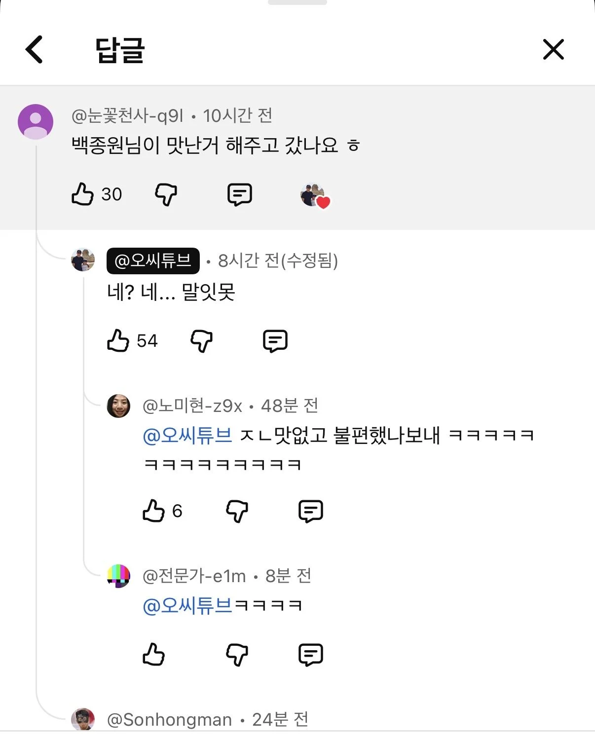 유머 분류 ??? : 백종원님이 맛난거 해주고 갔나요? 작성자 정보 황웅 쪽지보내기 자기소개 아이디로 검색 전체게시물 쪽지보내기 자기소개 아이디로 검색 전체게시물 작성 작성일 2025.11.18 06:54 컨텐츠 정보 4 조회 0 추천 0 비추천 목록 본문 잘 먹고 살고 있는데 괜히 왜 가가지고 ㅋㅋㅋㅋ저기 요리사가 더 실력 있을듯 0 추천 0 비추천 SNS 공유 신고 관련자료 서명 날으는 황웅 댓글 0 등록된 댓글이 없습니다. 로그인한 회원만 댓글 등록이 가능합니다. 목록