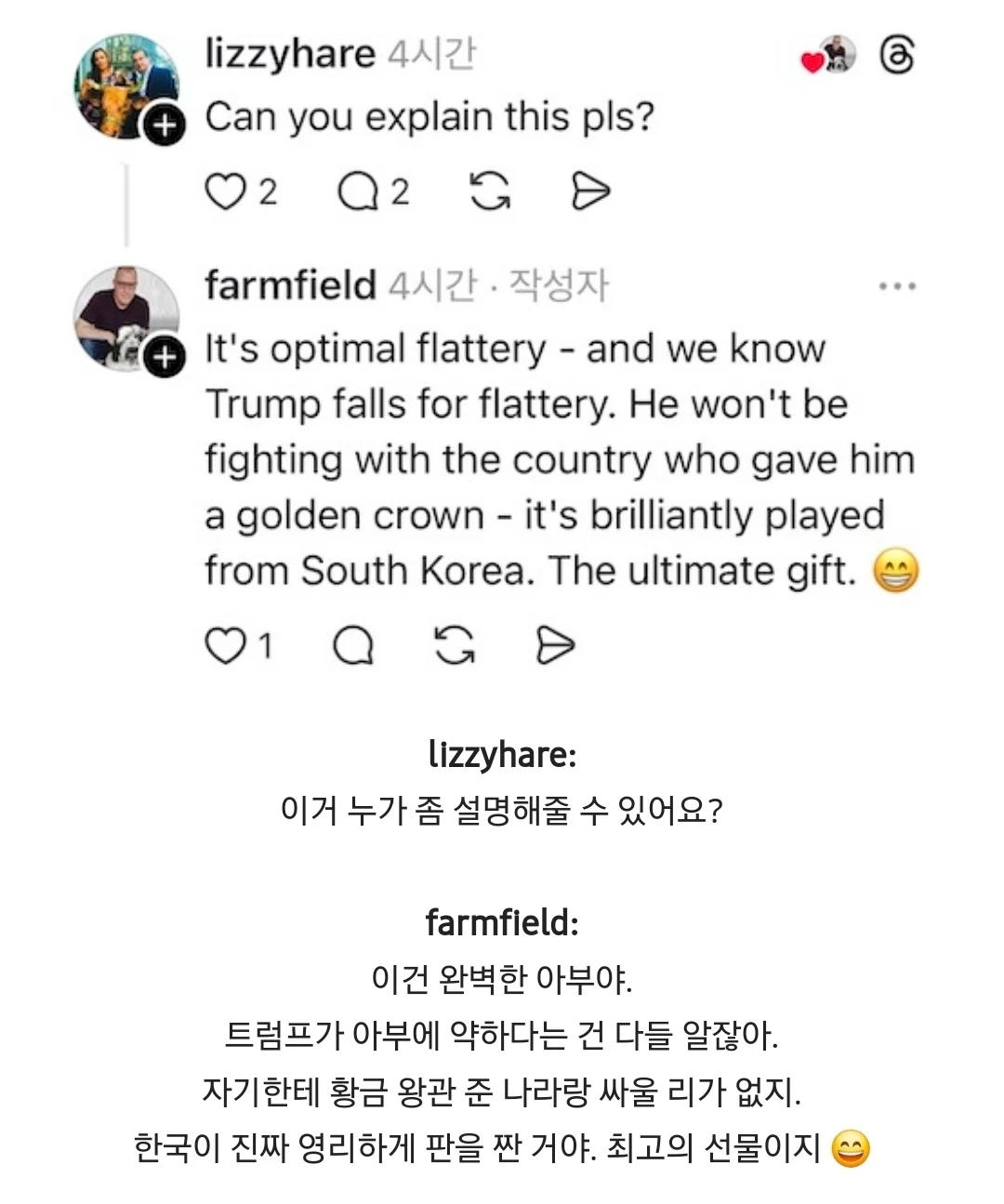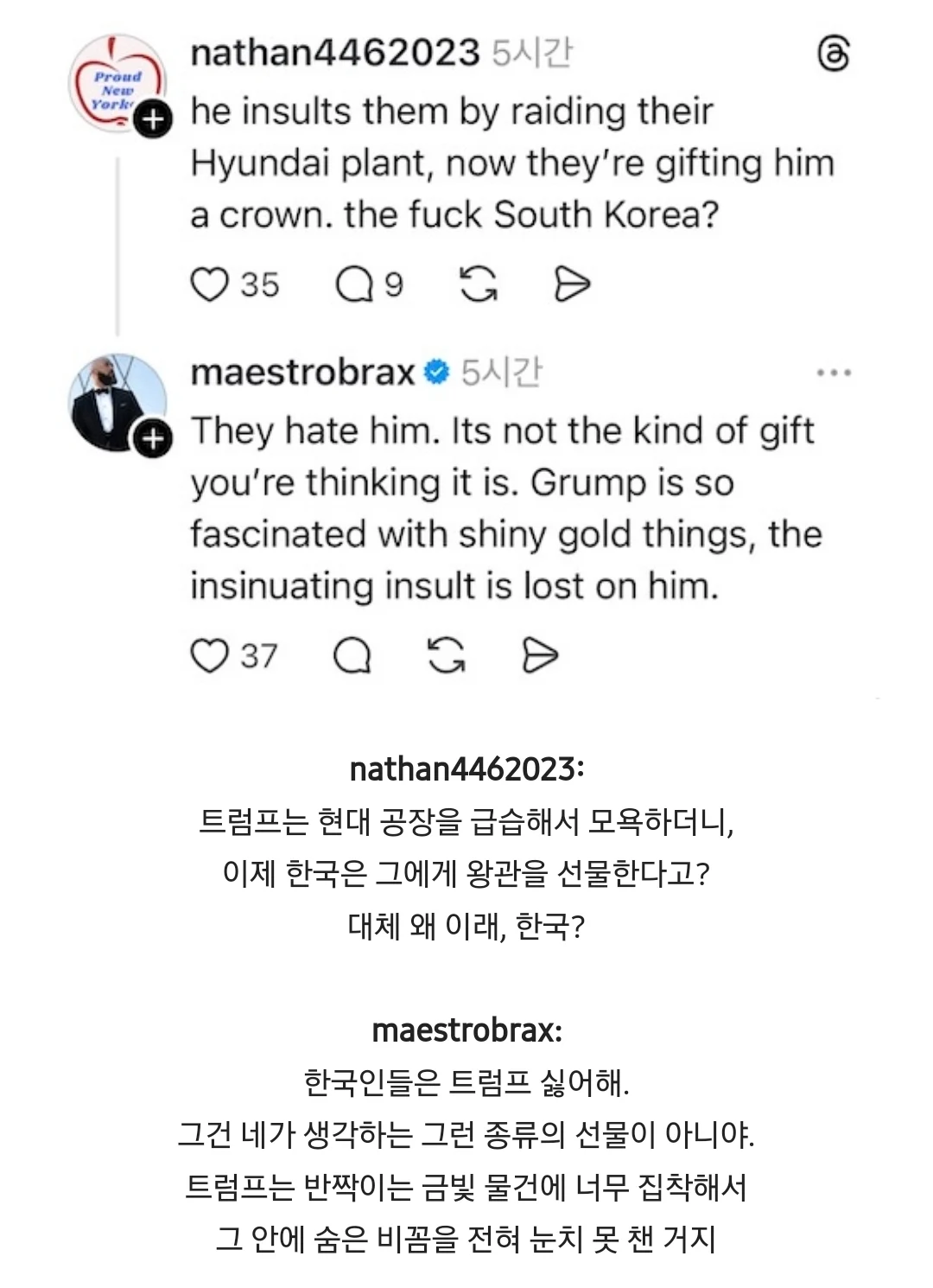 신라 금관을 선물받은 트럼프를 본 미국인들 반응