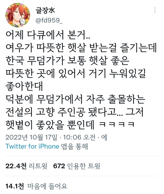 동물 분류 여우가 무덤에서 자주 발견된 이유 작성자 정보 황웅 쪽지보내기 자기소개 아이디로 검색 전체게시물 쪽지보내기 자기소개 아이디로 검색 전체게시물 작성 작성일 2025.10.03 18:31 컨텐츠 정보 19 조회 1 댓글 0 추천 0 비추천 목록 본문 0 추천 0 비추천 SNS 공유 신고 관련자료 서명 날으는 황웅 댓글 1 미우님의 댓글 미우 쪽지보내기 메일보내기 자기소개 아이디로 검색 전체게시물 쪽지보내기 메일보내기 자기소개 아이디로 검색 전체게시물 작성일 10.04 13:13 생긴 건 갠데 눈은 고양이 눈 신고 추천0비추천0 생긴 건 갠데 눈은 고양이 눈 로그인한 회원만 댓글 등록이 가능합니다. 목록