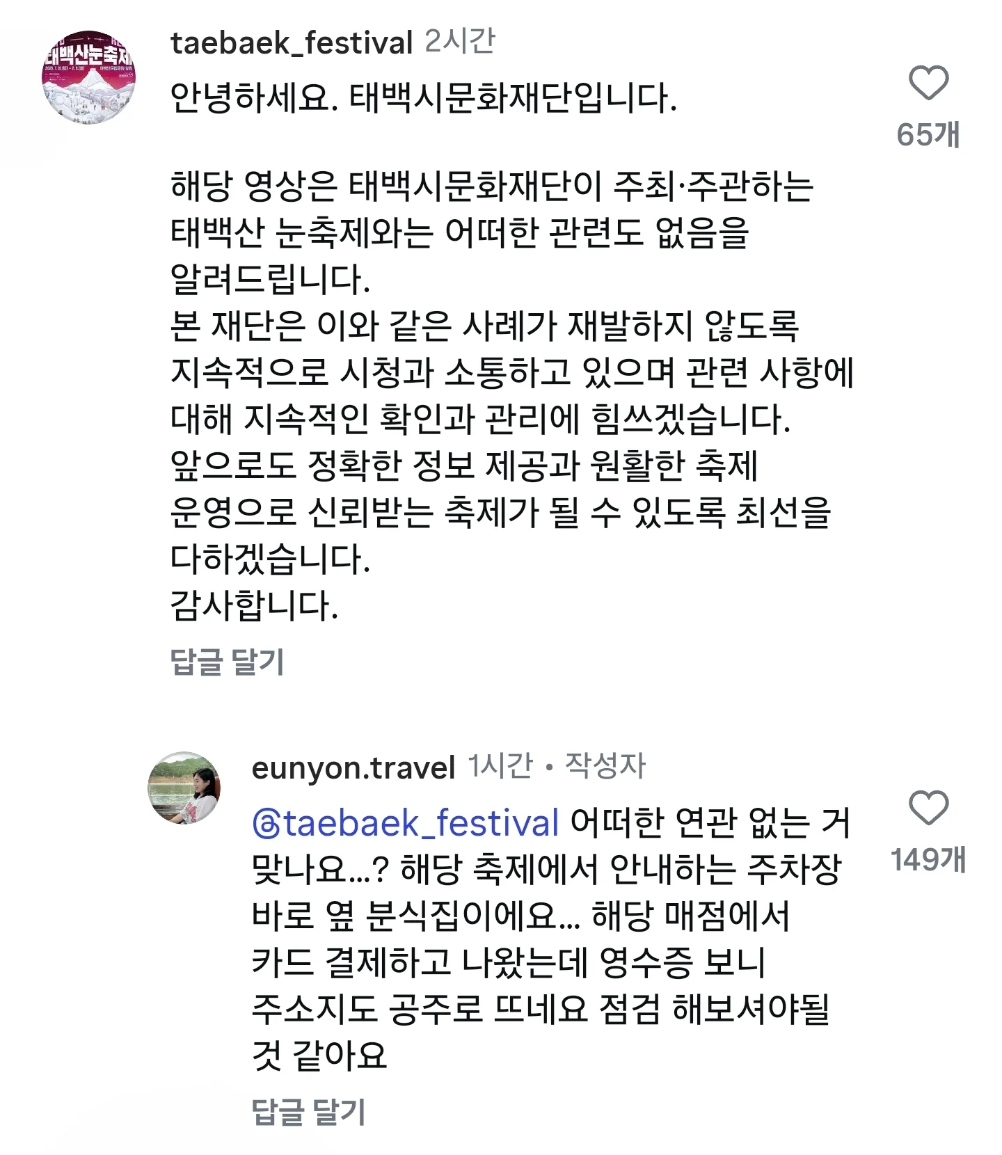 오늘자 태백산 눈축제 위생 관념 논란