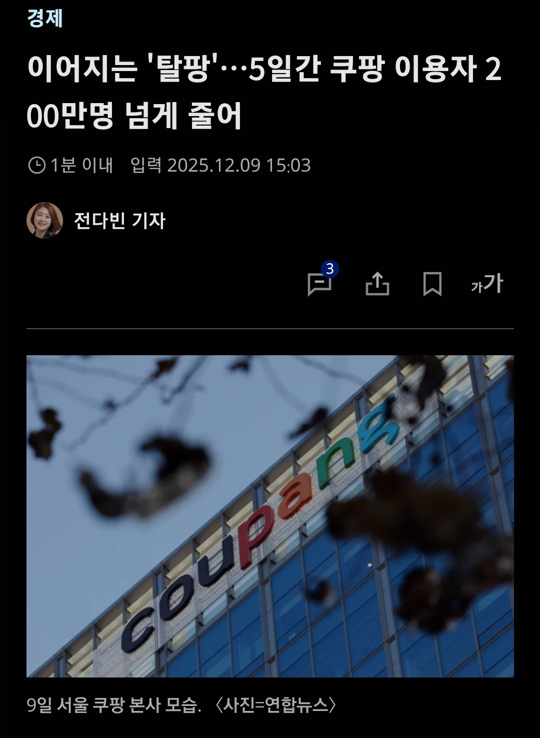 정보 분류 이어지는 '탈팡' 이용자수 5일간 200만명 넘게 줄어 작성자 정보 황웅 쪽지보내기 자기소개 아이디로 검색 전체게시물 쪽지보내기 자기소개 아이디로 검색 전체게시물 작성 작성일 2025.12.11 02:57 컨텐츠 정보 3 조회 0 추천 0 비추천 목록 본문 0 추천 0 비추천 SNS 공유 신고 관련자료 서명 날으는 황웅 댓글 0 등록된 댓글이 없습니다. 로그인한 회원만 댓글 등록이 가능합니다. 목록