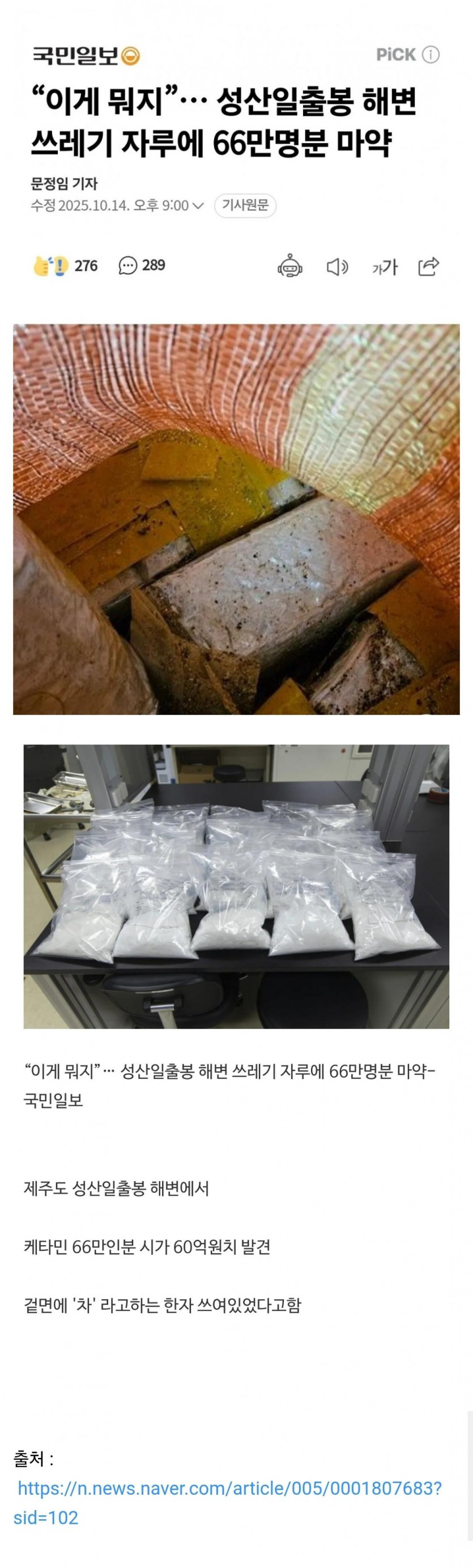 정보 분류 제주 성산일출봉 해변에서 마약 66만명분 발견 작성자 정보 황웅 쪽지보내기 자기소개 아이디로 검색 전체게시물 쪽지보내기 자기소개 아이디로 검색 전체게시물 작성 작성일 2025.10.15 22:11 컨텐츠 정보 7 조회 0 추천 0 비추천 목록 본문 마대에 차?마데인 차이나!!!제주도 밀입국한 짱개시키들이 잃어 버린 건가? 0 추천 0 비추천 SNS 공유 신고 관련자료 서명 날으는 황웅 댓글 0 등록된 댓글이 없습니다. 로그인한 회원만 댓글 등록이 가능합니다. 목록