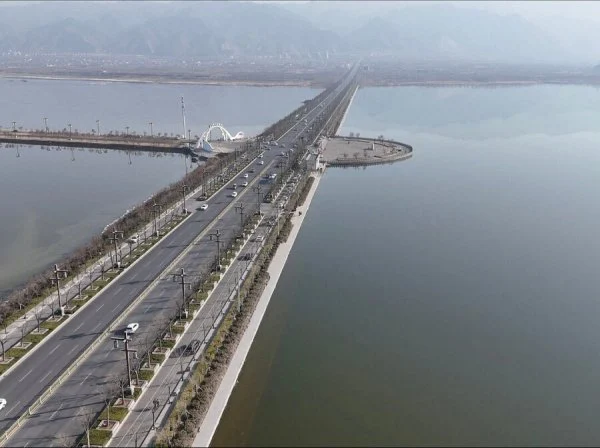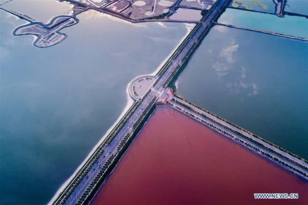 고속도로 주변 염호 소금물의 높은 반사율로 인해