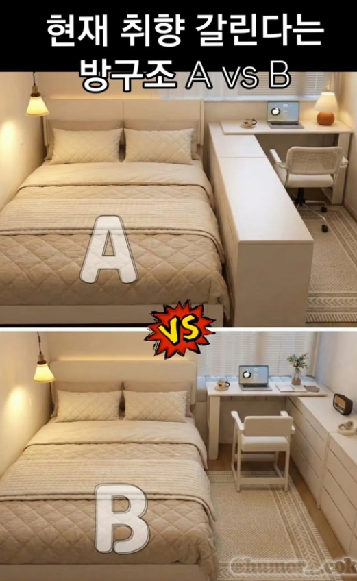 유머 분류 취향 갈린다는 방 구조 작성자 정보 황웅 쪽지보내기 자기소개 아이디로 검색 전체게시물 쪽지보내기 자기소개 아이디로 검색 전체게시물 작성 작성일 2026.01.13 20:33 컨텐츠 정보 88 조회 2 댓글 0 추천 0 비추천 목록 본문 전 개인적으로 B 0 추천 0 비추천 SNS 공유 신고 관련자료 서명 날으는 황웅 댓글 2 조은대님의 댓글 조은대 쪽지보내기 메일보내기 자기소개 아이디로 검색 전체게시물 쪽지보내기 메일보내기 자기소개 아이디로 검색 전체게시물 작성일 2026.01.14 00:43 A의 장점...자기전에 노트북이나 태블릿을 칸막이위에 올려놓고 유툽을 볼수 있다!!! 신고 추천0비추천0 A의 장점...자기전에 노트북이나 태블릿을 칸막이위에 올려놓고 유툽을 볼수 있다!!! 미우님의 댓글 미우 쪽지보내기 메일보내기 자기소개 아이디로 검색 전체게시물 쪽지보내기 메일보내기 자기소개 아이디로 검색 전체게시물 작성일 2026.01.14 02:19 문제 자체가 편협하네요. 장 일부를 머리 쪽에 두고 테이블을 우측에 둬야지 신고 추천0비추천0 문제 자체가 편협하네요. 장 일부를 머리 쪽에 두고 테이블을 우측에 둬야지 로그인한 회원만 댓글 등록이 가능합니다. 목록