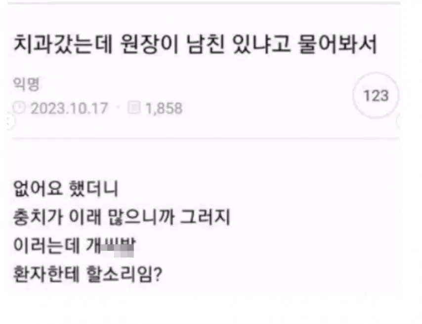유머 분류 치과 갔는데 원장이 남자친구 있냐고 물어봐서 작성자 정보 황웅 쪽지보내기 자기소개 아이디로 검색 전체게시물 쪽지보내기 자기소개 아이디로 검색 전체게시물 작성 작성일 2025.11.15 00:38 컨텐츠 정보 4 조회 0 추천 0 비추천 목록 관리 글검색 본문 딥빡이 느껴진다 ㅋㅋㅋㅋㅋㅋ 0 추천 0 비추천 SNS 공유 신고 관련자료 서명 날으는 황웅 댓글 0 등록된 댓글이 없습니다. 로그인한 회원만 댓글 등록이 가능합니다. 목록 관리 글검색