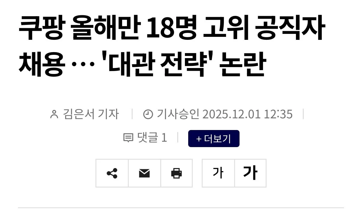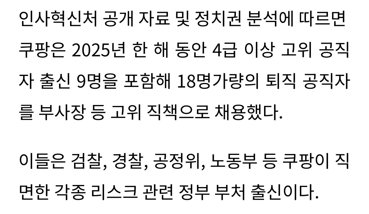 쿠팡 올해에만 고위공직자 “18명” 채용