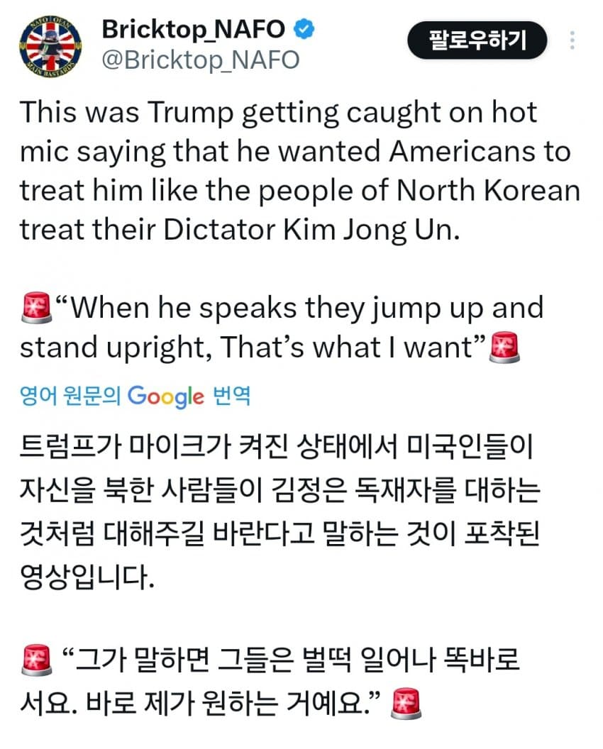 푸틴하고 김정은 칭찬한게 진심이었어? 미친놈이네 ㄷㄷ