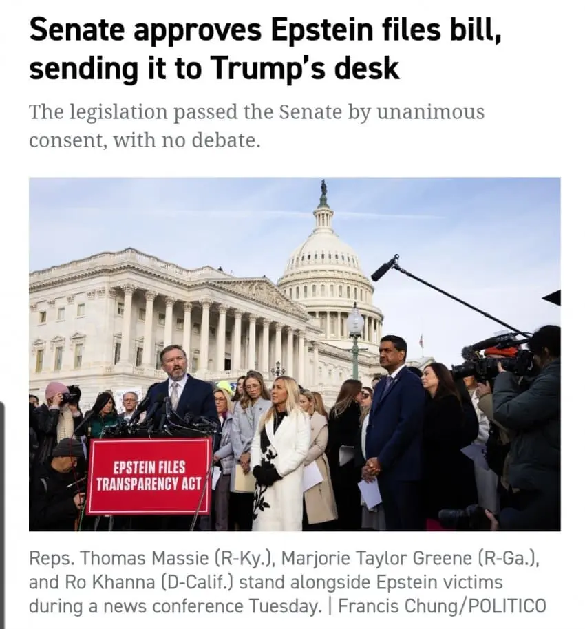 트럼프 발언 이후 엡스타인 파일 공개 미국 상하원 통과