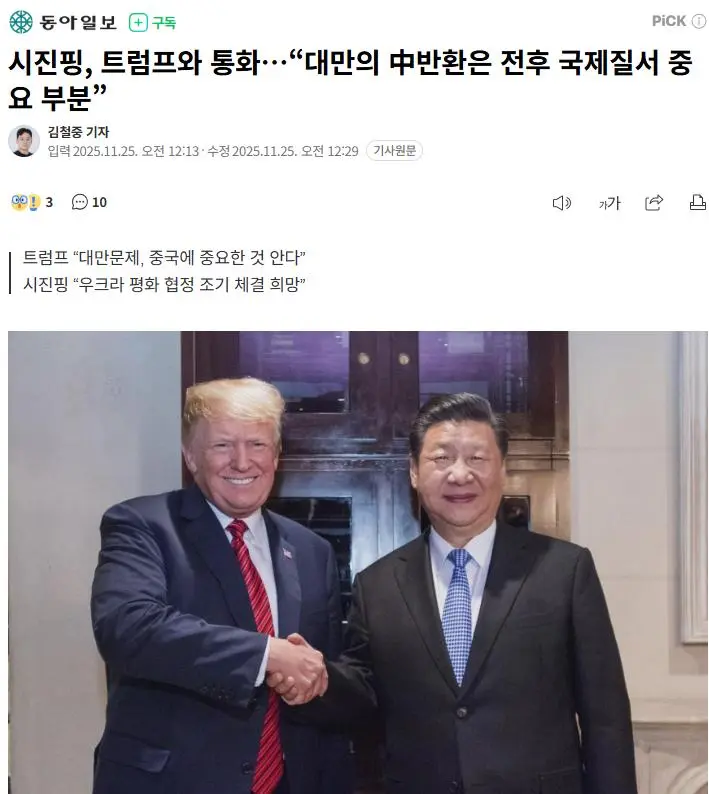 "트럼프-시진핑 긴급 통화 : 미국은 우크라이나 챙기고, 중국은 대만 챙김"