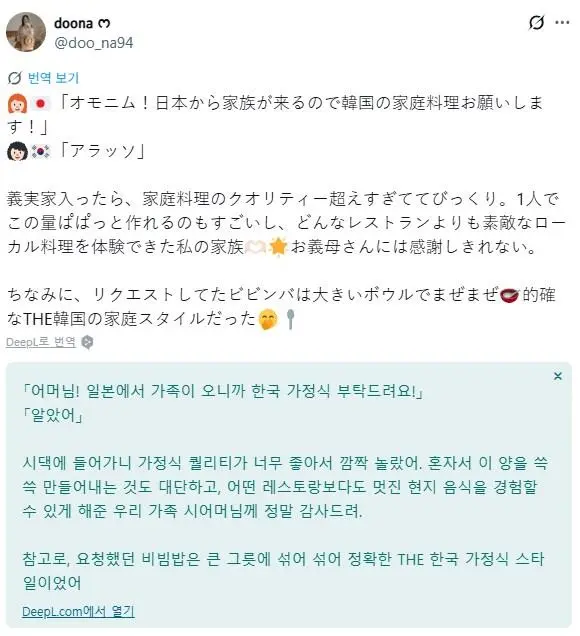 "어머님, 이번에 일본에서 가족들이 오는데