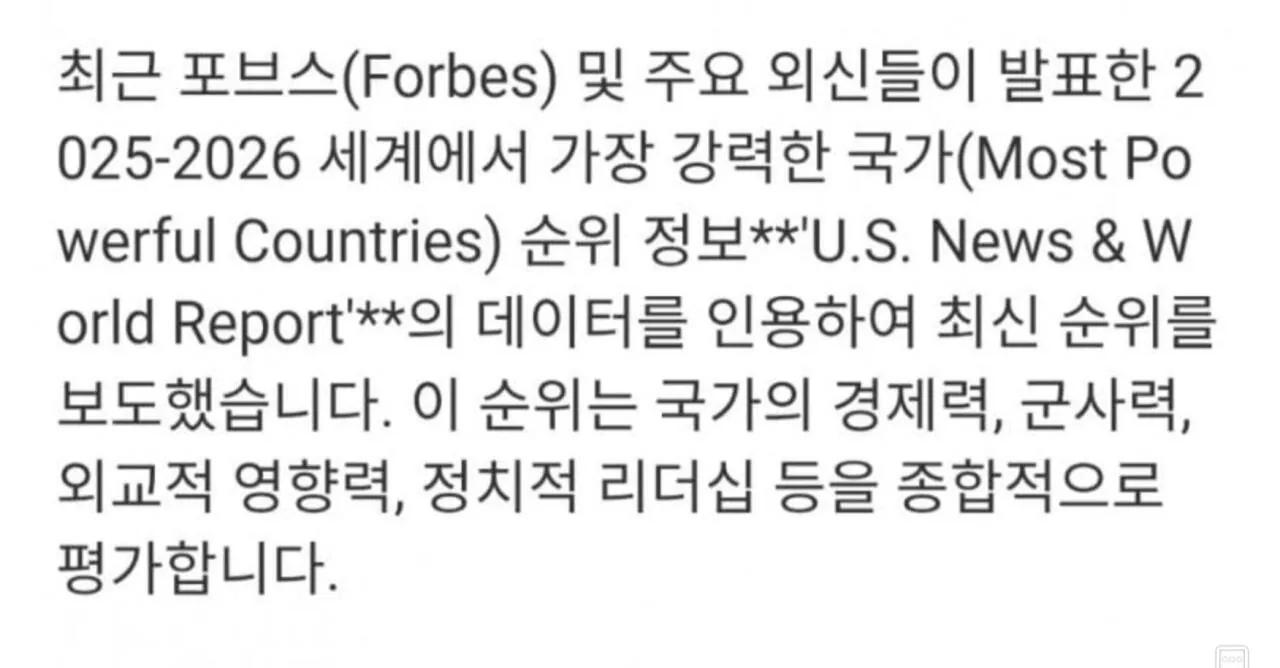 정보 분류 포브스가 선정한 강력한 국가들 TOP 10 에서 한국이 6위를 차지함 작성자 정보 황웅 쪽지보내기 자기소개 아이디로 검색 전체게시물 쪽지보내기 자기소개 아이디로 검색 전체게시물 작성 작성일 2026.02.10 04:07 컨텐츠 정보 43 조회 0 추천 0 비추천 목록 본문 이런 나라를 지난 3년간 ㅠㅠ몇년 뒤면 ai + 로봇 시대가 오면 사람의 노동력이 필요한 분야는 점점 사라져서 ... 소규모 농업 분야만 남는다고 합니다! 그래서 필요한 제도가 “보편적 기본 소득”입니다!직업으로 일하는 사회가 아니아 취미로 (취미생활)일하는 사회인 것이죠! 0 추천 0 비추천 SNS 공유 신고 관련자료 서명 날으는 황웅 댓글 0 등록된 댓글이 없습니다. 로그인한 회원만 댓글 등록이 가능합니다. 목록
