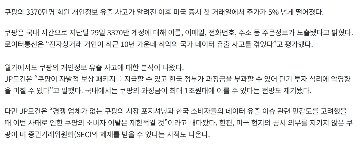 근데 쿠팡이 컴플라이언스에 대해서 관리가 안되고 있었다는건
