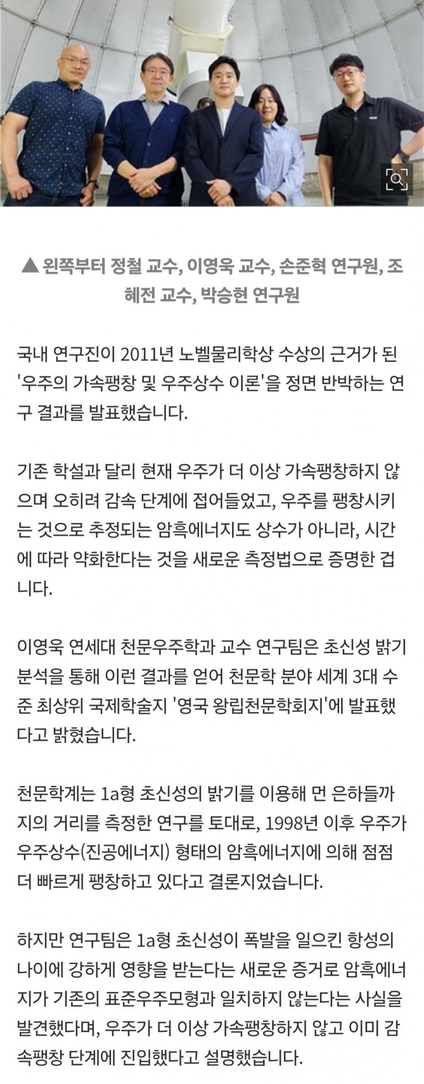 한국 연구진, 노벨상 이론 뒤집어…"우주는 가속팽창하지 않아"