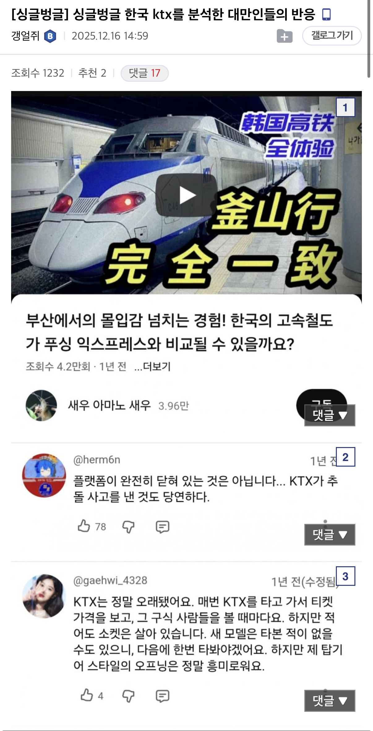 한국과 대만은 비슷한 시기(2004,2007) 고속철도가 도입되었고