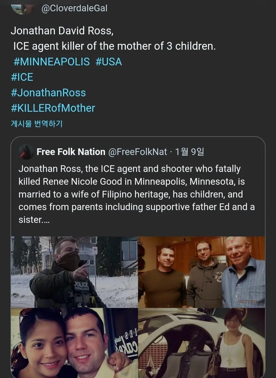 정보 분류 MAGA ICE 한 놈 신원 털림 작성자 정보 황웅 쪽지보내기 자기소개 아이디로 검색 전체게시물 쪽지보내기 자기소개 아이디로 검색 전체게시물 작성 작성일 2026.01.13 05:30 컨텐츠 정보 75 조회 0 추천 0 비추천 목록 본문 뉴스에 나오는 3아이의 엄마 죽인 ice대원 새끼인듯 하네요 0 추천 0 비추천 SNS 공유 신고 관련자료 서명 날으는 황웅 댓글 0 등록된 댓글이 없습니다. 로그인한 회원만 댓글 등록이 가능합니다. 목록