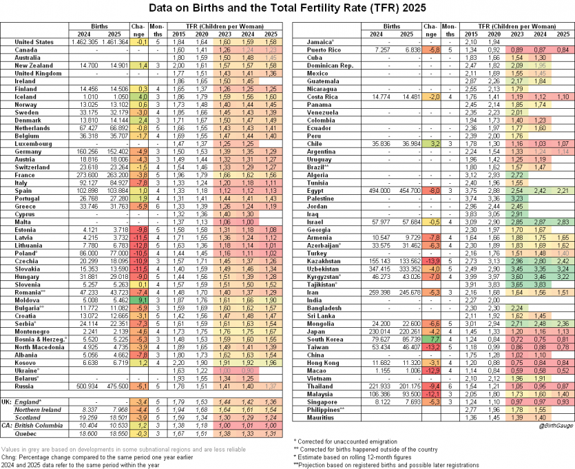수다 분류 대만 저출산 1위 등극, 2025 세계 출산율 작성자 정보 KingCrab 쪽지보내기 자기소개 아이디로 검색 전체게시물 쪽지보내기 자기소개 아이디로 검색 전체게시물 작성 작성일 2026.01.27 23:33 컨텐츠 정보 198 조회 3 댓글 0 추천 0 비추천 목록 본문 한국 0.81, 대만 0.78대만은 중국에 자동 흡수될듯재미난 건 태국이 0.87로 여기도 심각합니다. 0 추천 0 비추천 SNS 공유 신고 관련자료 서명 한러를 유랑하는 킹크랩 도령 댓글 3 미우님의 댓글 미우 쪽지보내기 메일보내기 자기소개 아이디로 검색 전체게시물 쪽지보내기 메일보내기 자기소개 아이디로 검색 전체게시물 작성일 2026.01.27 23:41 모든 국가 다 나오질 않네요 아프리카랑 스탄국가, 이스라엘만 사라지면 지구가 좀 좋아지려나 미쿡 중쿡 러시아는 아직 살만한가 보네, 1.5명이나 낳고 https://statisticstimes.com/demographics/countries-by-fertility-rate.php 신고 추천0비추천0 모든 국가 다 나오질 않네요 아프리카랑 스탄국가, 이스라엘만 사라지면 지구가 좀 좋아지려나 미쿡 중쿡 러시아는 아직 살만한가 보네, 1.5명이나 낳고 https://statisticstimes.com/demographics/countries-by-fertility-rate.php KingCrab님의 댓글의 댓글 KingCrab 쪽지보내기 메일보내기 자기소개 아이디로 검색 전체게시물 쪽지보내기 메일보내기 자기소개 아이디로 검색 전체게시물 작성일 2026.01.27 23:45 러시아도 저출산 때문에 고민이 많은 나라입니다. 각종 당근책을 내놓고 있죠. 근데 0.X대 나라들이 있으니 우리 눈엔 괜찮아 보이는 것 뿐이죠. 😆 신고 추천0비추천0 러시아도 저출산 때문에 고민이 많은 나라입니다. 각종 당근책을 내놓고 있죠. 근데 0.X대 나라들이 있으니 우리 눈엔 괜찮아 보이는 것 뿐이죠. 😆 잠수함님의 댓글 잠수함 쪽지보내기 메일보내기 자기소개 아이디로 검색 전체게시물 쪽지보내기 메일보내기 자기소개 아이디로 검색 전체게시물 작성일 2026.01.28 21:02 최근 연구 결과 로는 한국이 앞서 간 거지 지구적인 현상 이라고 합니다 다른 나라들 다 따르고 있는 현상이라는 거 동아시아가 좀 더 앞서 가는 겁니다 신고 추천0비추천0 최근 연구 결과 로는 한국이 앞서 간 거지 지구적인 현상 이라고 합니다 다른 나라들 다 따르고 있는 현상이라는 거 동아시아가 좀 더 앞서 가는 겁니다 로그인한 회원만 댓글 등록이 가능합니다. 목록