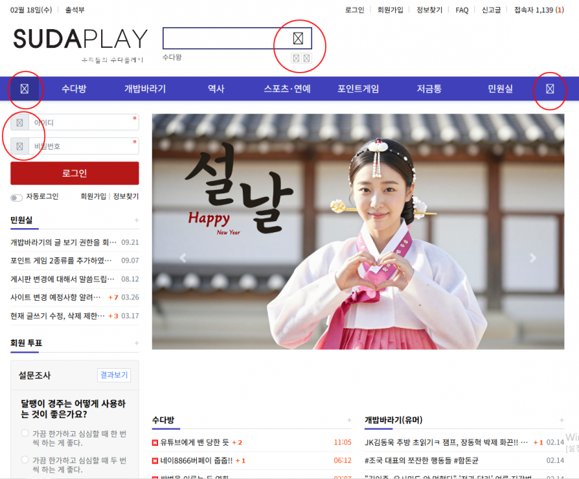 수다 분류 력쩌기님 방화벽 사태후에 좀 달라진듯한 수플 작성자 정보 조은대 쪽지보내기 자기소개 아이디로 검색 전체게시물 쪽지보내기 자기소개 아이디로 검색 전체게시물 작성 작성일 2026.02.18 12:49 컨텐츠 정보 15 조회 3 댓글 0 추천 0 비추천 목록 관리 글검색 본문 처음 접속후 또는 로딩시에 x마크가 출몰합니다.메인화면에 폰트도 좀 달라진거 같기두 하네요. 0 추천 0 비추천 SNS 공유 신고 관련자료 댓글 3 Analogue님의 댓글 Analogue 쪽지보내기 메일보내기 자기소개 아이디로 검색 전체게시물 쪽지보내기 메일보내기 자기소개 아이디로 검색 전체게시물 작성일 13:01 그거 한복 언냐 배꼽이예염. 신고 추천0비추천0 그거 한복 언냐 배꼽이예염. {emo:onion-002.gif:50} 미우님의 댓글 미우 쪽지보내기 메일보내기 자기소개 아이디로 검색 전체게시물 쪽지보내기 메일보내기 자기소개 아이디로 검색 전체게시물 작성일 13:16 내란 역모 그딴 거 하다보면 어디선가 자꾸 삑사리가 나게 되어이뜸 신고 추천0비추천0 내란 역모 그딴 거 하다보면 어디선가 자꾸 삑사리가 나게 되어이뜸 바야바라밀님의 댓글 바야바라밀 쪽지보내기 메일보내기 자기소개 아이디로 검색 전체게시물 쪽지보내기 메일보내기 자기소개 아이디로 검색 전체게시물 작성일 14:50 이것 저것 할려니 복잡해지지 수다방/ 아재골방 두개만 남기고 싹다 폭파시켜라. 신고 추천0비추천0 이것 저것 할려니 복잡해지지 수다방/ 아재골방 두개만 남기고 싹다 폭파시켜라. 로그인한 회원만 댓글 등록이 가능합니다. 목록 관리 글검색