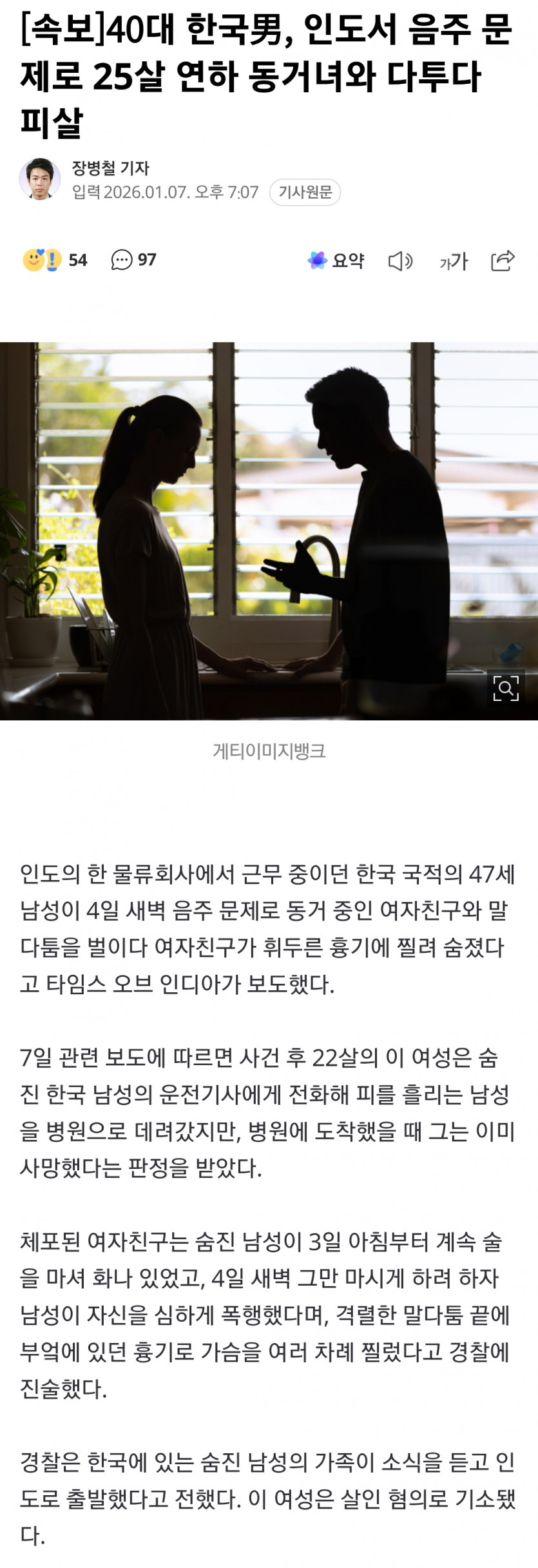 수다 분류 자아 컨트롤 엉망 유부남 작성자 정보 KingCrab 쪽지보내기 자기소개 아이디로 검색 전체게시물 쪽지보내기 자기소개 아이디로 검색 전체게시물 작성 작성일 2026.01.08 11:06 컨텐츠 정보 58 조회 2 댓글 0 추천 0 비추천 목록 본문 한국에 부인이 있다고 하네요.남자는 모비스 직원이라나 뭐라나.부인이 이 소식을 듣고 인도로 갔다나요? 0 추천 0 비추천 SNS 공유 신고 관련자료 서명 한러를 유랑하는 킹크랩 도령 댓글 2 미우님의 댓글 미우 쪽지보내기 메일보내기 자기소개 아이디로 검색 전체게시물 쪽지보내기 메일보내기 자기소개 아이디로 검색 전체게시물 작성일 01.08 12:05 나같음 안간다 신고 추천0비추천0 나같음 안간다 바야바라밀님의 댓글 바야바라밀 쪽지보내기 메일보내기 자기소개 아이디로 검색 전체게시물 쪽지보내기 메일보내기 자기소개 아이디로 검색 전체게시물 작성일 01.08 15:15 갠지스 강으로 가는건가. 신고 추천0비추천0 갠지스 강으로 가는건가. 로그인한 회원만 댓글 등록이 가능합니다. 목록