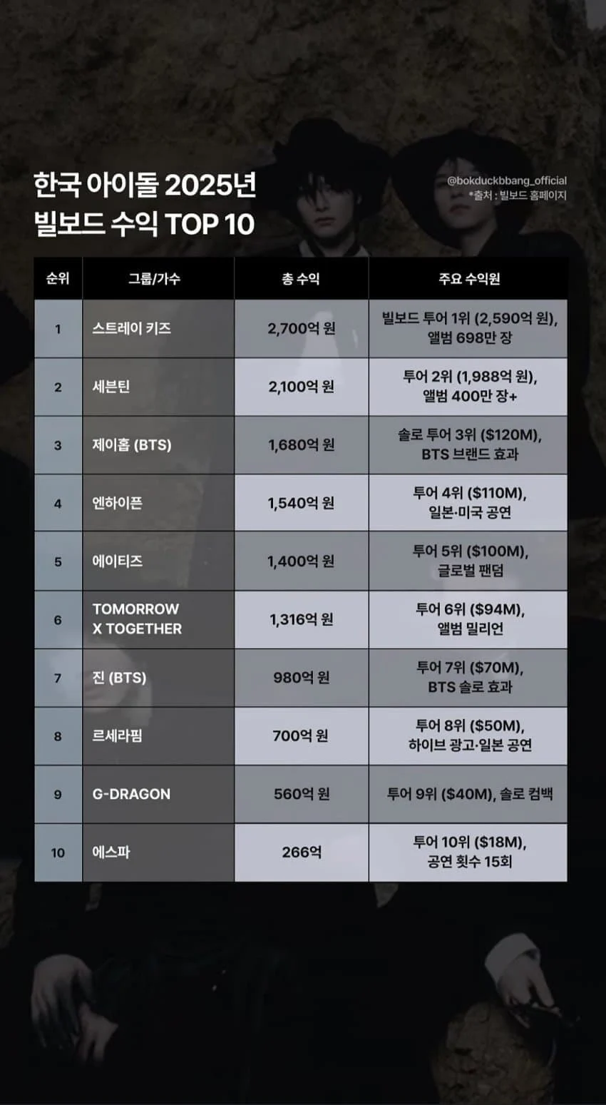 연예 분류 한국 아이돌 2025년 빌보드 수익 TOP 10 작성자 정보 황웅 쪽지보내기 자기소개 아이디로 검색 전체게시물 쪽지보내기 자기소개 아이디로 검색 전체게시물 작성 작성일 2026.02.12 21:45 컨텐츠 정보 475 조회 0 추천 0 비추천 목록 본문 0 추천 0 비추천 SNS 공유 신고 관련자료 서명 날으는 황웅 댓글 0 등록된 댓글이 없습니다. 로그인한 회원만 댓글 등록이 가능합니다. 목록