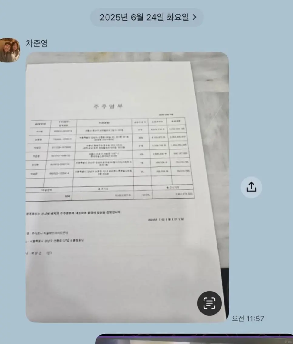 함께 뺏어보자며 보낸 가짜 서류 이며 저에게 지분을 넘기자고