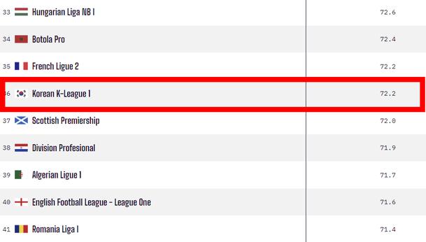 71.6점의 잉글리시 풋볼리그 리그원(3부)과 큰 차이가 나지 않는 수준이다.